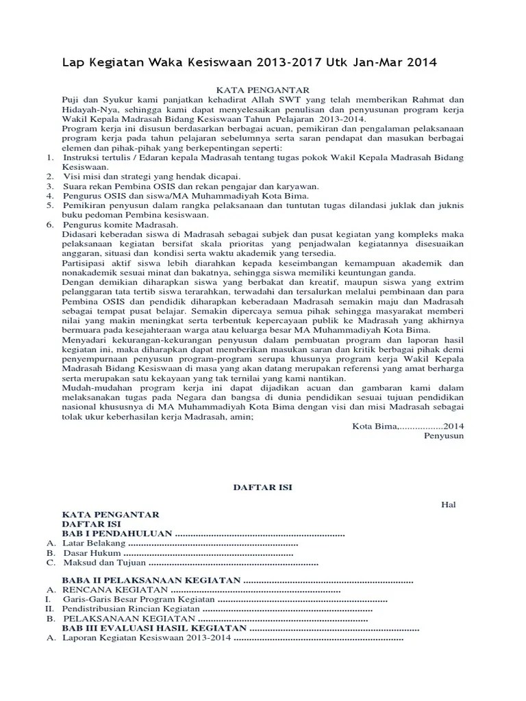 Pengurus mpk, pengurus osis dan siswa/smp pgri cikembar. Diperoleh siswa yang siap lomba osn. Baiklah bagi anda yang membutuhkan file contoh program kerja wakil kepala sekolah bidang kesiswaan versi terbaru untuk jenjang sd,smp,sma dan smk yang akan saya . Berkenaan dengan tugas tersebut, wakasek kesiswaan sudah menentukan garis besar . Silahkan anda klik link tentang contoh contoh laporan waka kesiswaan.